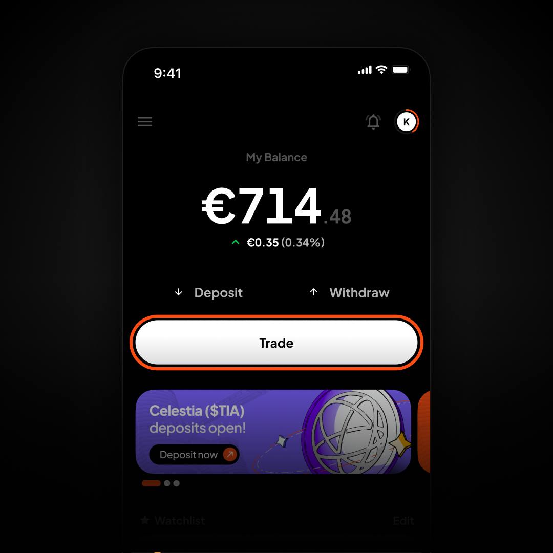 Tap Trade in Coinmetro's App Dash and choose One time or Recurring investment, whichever you prefer.